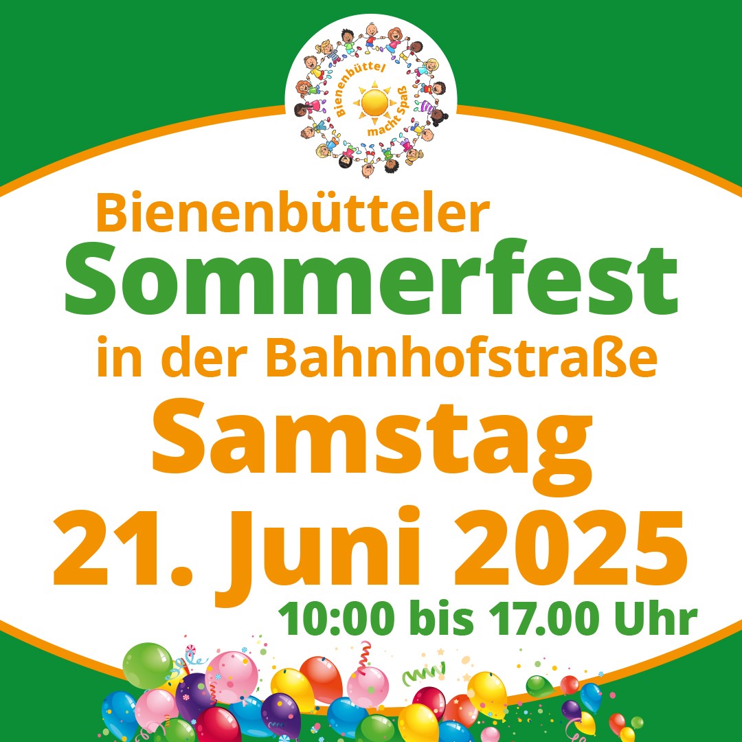 Am 21. Juni 2025 findet in der Bahnhofstraße in Bienenbüttel ein Sommerfest statt.