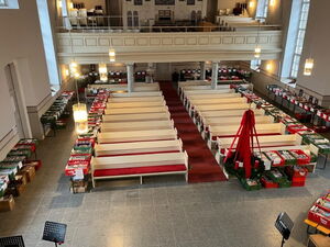 Viele Besucherinnen und Besucher stöberten in der St. Michaelis-Kirche in über 200 Bücherkisten und ein Großteil des Angebots fand neue Besitzerinnen und Besitzer.
