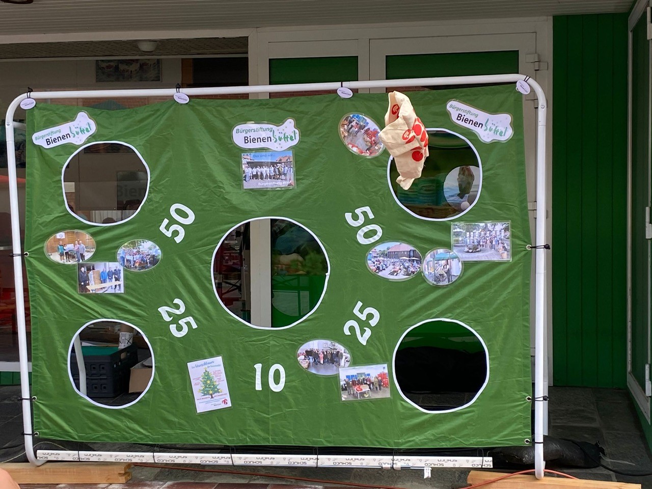 Gemeinsam mit vielen Bienenbütteler Vereinen, Organisationen und Gewerbetreibenden nimmt die Bürgerstiftung an dieser Veranstaltung für Jung und Alt mit dem Spiel „BIENENBÜTTELS BEUTEL SCHLEUDERteil – einem Wurfspiel, dessen Ziel es ist, mit drei Schleuderwürfen mit unterschiedlich schweren und verschieden ausbalancierten Beuteln auf eine Zielwand möglichst viele Punkte zu sammeln.